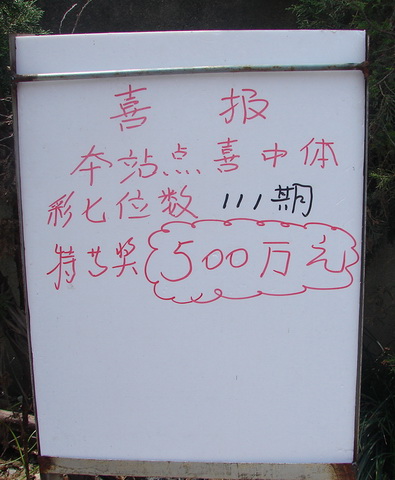 中奖站点位于南通市崇川区人民路中南大厦东侧,是个有着近十年体彩销售历史的书报亭。地处繁忙的端平桥菜场对面,勤劳的销售员戴女士每天早上六点半就开门营业,直至晚上八点半才打烊回家。周边的市民已习惯用买菜剩下的零钱到书报亭买份报纸。打两注彩票。随着轰隆的炮竹声,大奖的消息一早就在菜场内扩散开来,大家都在讨论谁是这个幸运儿?由于本期的中奖号码像极了某个固定电话,还有人提议打了试试看。戴女士说她“想破了头”也没半点线索。看来这个谜题,只能等中奖者自己到南京兑奖揭晓了。(通彩)