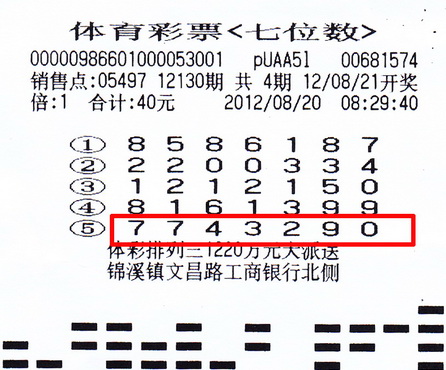 8月26日晚,7位数12133期开出中奖号码“7743290”,这与周先生守号的第5注号码完全一致,周先生的中奖夙愿终于实现了。办完领奖手续,周先生乐呵呵地表示,“国庆节带全家人境外游。”