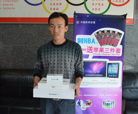 国庆长假刚过,NBA20元票的中奖喜讯仍然不断传来,截止10月7日,江苏彩民已中得13960个NBA特许产品大礼包,为全国最多。而我省独家开展的“中8000送苹果三件套”活动仍在火热进行中。10月9日中午,江苏体彩兑奖大厅再次迎来了两位NBA20元票“苹果三件套”得主,他们分别是无锡的赵先生以及苏州的陈先生,巧合的是他们所中奖项均为NBA20元票的8000元“满堂彩”。
