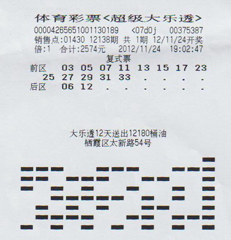 再看这张中奖彩票,当期大乐透的期号为:12138期;购买时间为:11月24日19:02:47;购彩金额为2574元;前区号码为全单组合,分别为“ 03 、05 、07、 11 、13 、15、 17、 23 、25 、27、 29 、31、 33”,后区号码只选了两个,分别是“06 、12”。黄先生谈到这次投注还颇为得意:“这次号码我也是研究了半天,最后敲定这个全单组合才发给小蒋的。”当期中奖号码为“13 、17、 27、 31 、33+06 、12”,这张“13+2”的复式票最后共中得1注一等奖、40注四等奖、280注六等奖、560注七等奖、406注八等奖,总奖金达到7141182元。(苏彩)