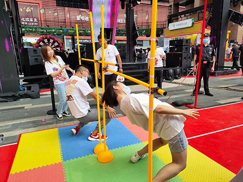 本次嘉年华广场设置了竞技闯关区与运动体验区。热血篮球、体感游戏、穿越火线、充气飞镖等多项群众喜闻乐见的体验运动应有尽有,现场观众纷纷大显神通,享受了一场趣味十足的健身之旅。