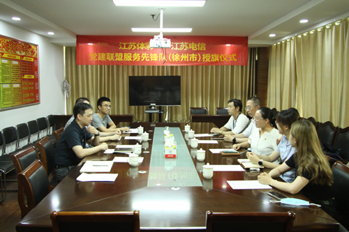 8月4日下午,为积极推进“两在两同”建新功行动和“我为群众办实事”实践活动,加强党建与业务深入融合,进一步做好网点服务保障和安全管理,根据省体彩中心统一工作部署,徐州市体彩中心联合中国电信徐州公司成立“江苏体彩——江苏电信党建联盟服务先锋队”,授旗仪式在徐州市体育彩票管理中心举行。