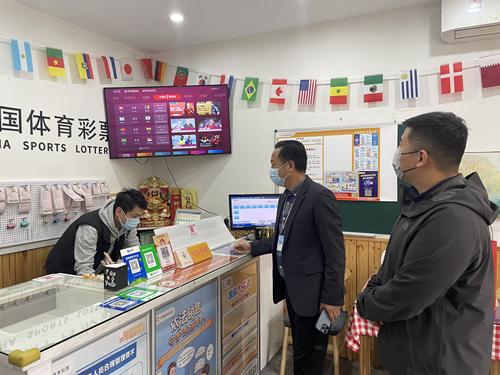 为贯彻落实国家体彩中心、省体彩中心关于加强卡塔尔世界杯期间体育彩票销售合规管理工作部署,保障常州市世界杯期间体育彩票市场安全稳定运行,11月24日,常州市体育局产业处处长、常州市体育彩票管理中心党支部书记、主任带队,深入体彩销售网点,实地检查网点安全生产工作、世界杯销售合规管理工作和疫情防控工作的落实情况。